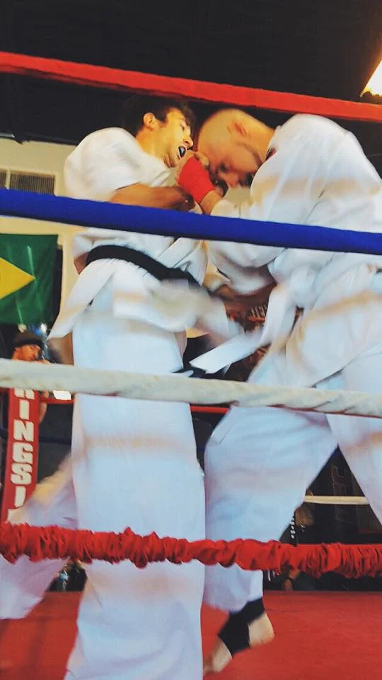 First up was Mr. McCullars in the light weight division. His original competitor was unable to participate as was Garrett McInnish’s competitor. Mr. McCullars and Garrett fought. Mr. McCullars won but he was able to use the fight as a training session for Garrett. Mr. McCullars truly exhibited Yoshukai spirit during this fight. The fight went the regulation 3 rounds.